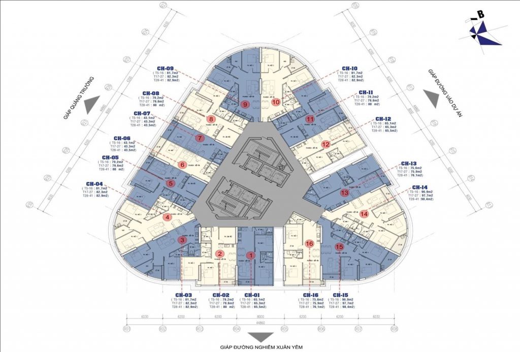 +  Tổng diện tích sàn chung cư (tầng 5 – 43): 61.945 m2