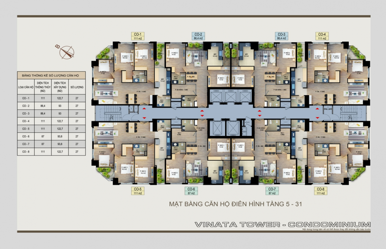 • Tổ hợp khu chung cư cao cấp Vinata Tower được xây dựng cao 31 tầng, trong đó: